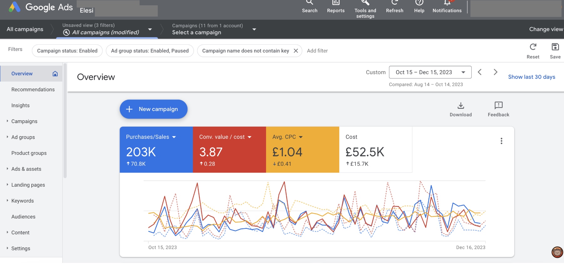 When we stepped in and audited the account, we immediately identified several gaps: Elesi was leaving money on the table. We began by optimizing their existing Google campaigns and launched new ones focused on high-performing 'hero' products, which helped improve stock management and sales forecasting.